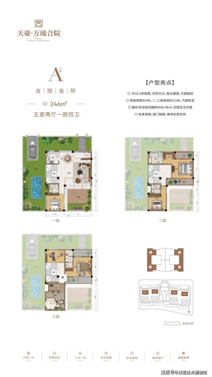 产品户型:建面约230-246㎡花园式合院,建面约276㎡空中平墅
