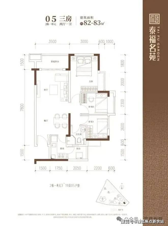 建面约82-83㎡的3房2厅1卫户型,在保证空间尺度感的前提下做到3个房间,实用性高
