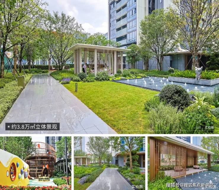 耗资上亿约3.8万㎡立体景观,约2300m²社区运动空间,超1000㎡儿童游乐区,约560m²子母泳池,约400m健康步道,景观天花板,私享耗资上亿立体园林,多元复合连廊,无惧风吹日晒;用活力,打造复合生态园林,府藏四季大境。