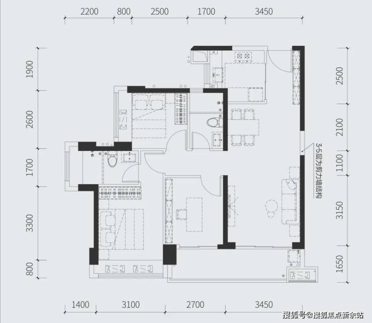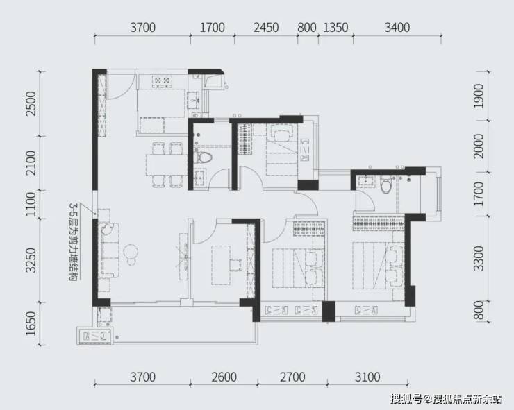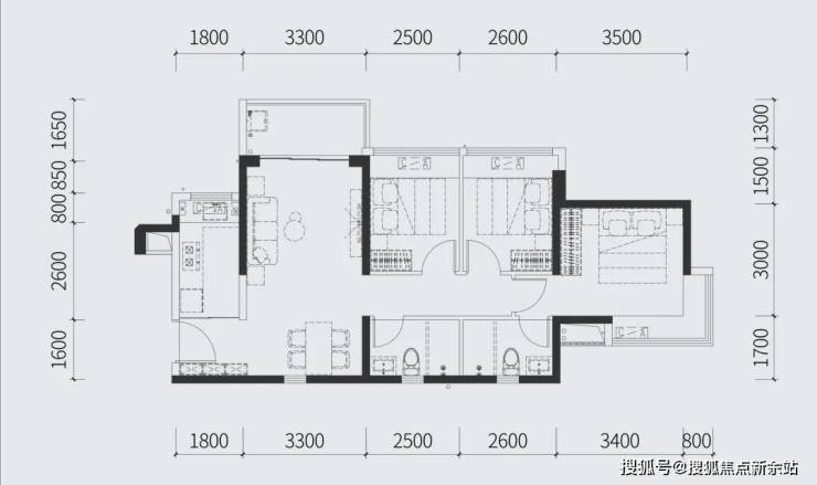1、市面上难得八十多平做到真正的三房两卫,同片区小面积户型多为1卫或1.5卫