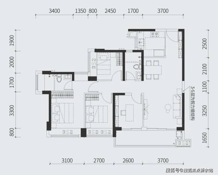 全明四开间 享充盈阳光盛景 卫浴三分离 居家清爽洁净