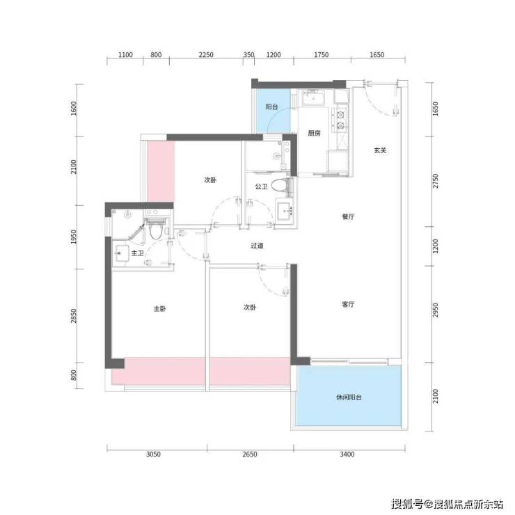 88m²的3房2厅2卫,折后总价185-202万,单价2.1-2.29万/m²。