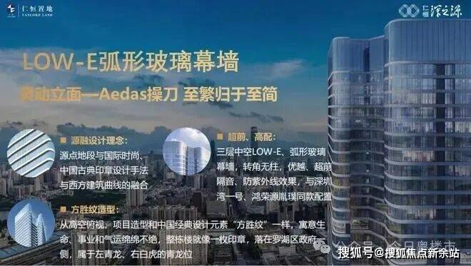 源系TOP级作品:云端地标 环幕视野0约208米云端地标,270°环幕视野,坐拥地标级城市景观与稀缺山水资源:2定制超白三层中空LOW-E曲面玻璃搭配横向铝板线条,标识性的超流线立面建筑