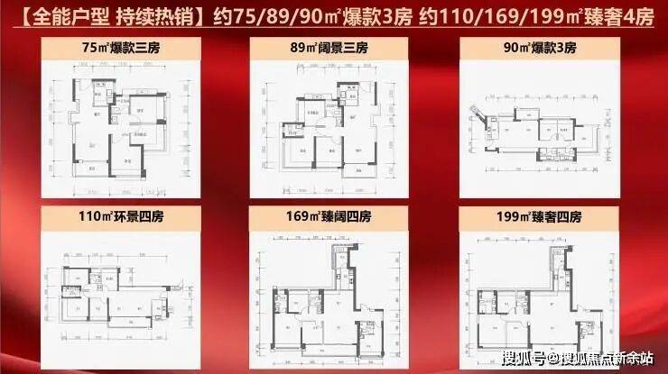 其他户型图鉴赏:建面约75㎡-199㎡全能3-4房,项目不加赠送的得房率为74-77%,但加上赠送面积后,得房率可达84-96%,最高甚至达到97%