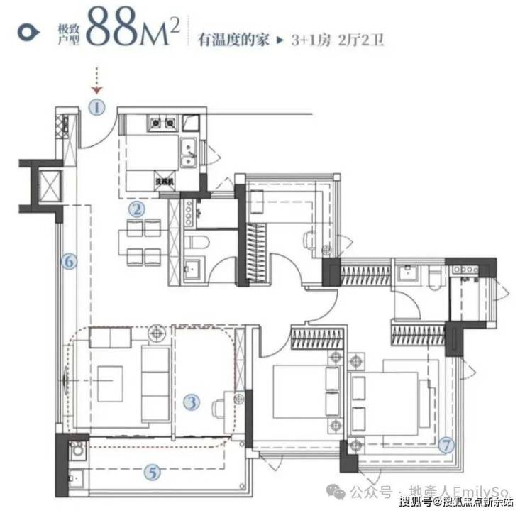 根据剧透消息,面积88㎡-107㎡-122㎡,全南向户型。