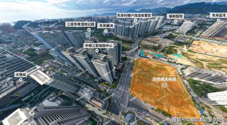 该盘地段很牛,地处三亚CBD东岸片区,一路之隔是中粮三亚大悦中心,南侧与大悦城距离约250米,北侧是在建的中央商务区中央公园,占地约363.51亩,西侧是近千亩的东岸湿地公园。