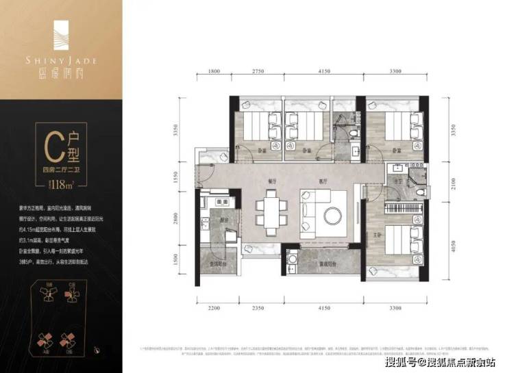 建面约118㎡四房两厅两卫双阳台