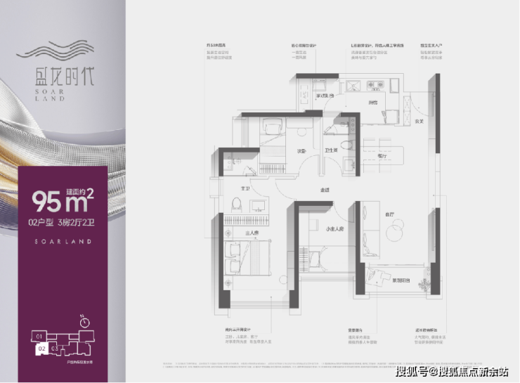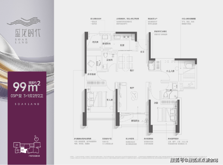 【盛龙时代】定位是面向城市精英的乐活、时尚的精品社区。可售房源仅约110套。本次推售的是市场臻稀的创新产品:约99㎡3+1房2卫,以及约95㎡三房2卫