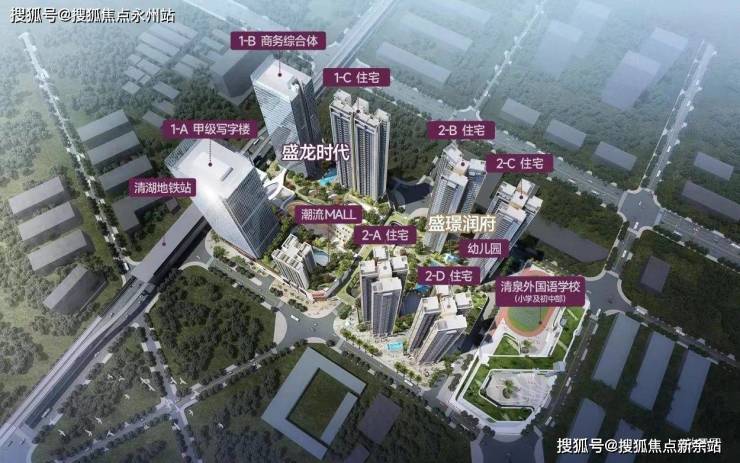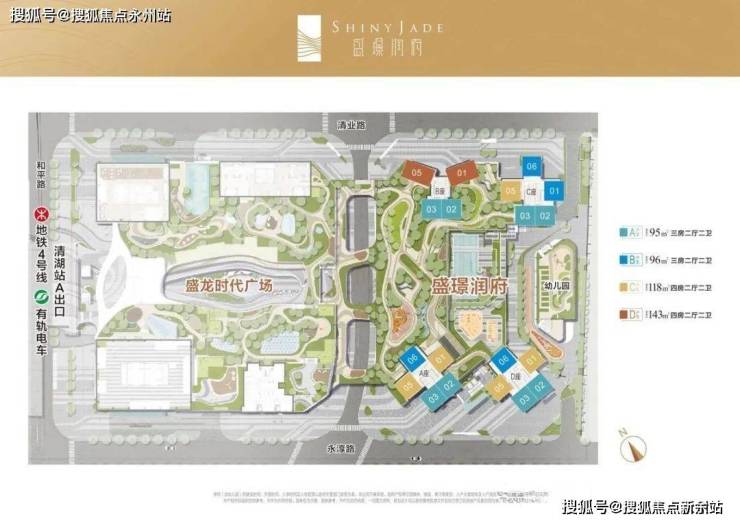 盛璟润府,总占地面积约1.79万㎡,总建筑面积约13万㎡,计容建筑面积约10.2万㎡,容积率4.85,绿化率25%,共由4栋总高45F的住宅组成,分别是2栋A/B/C/D座,还规划有1所幼儿园。