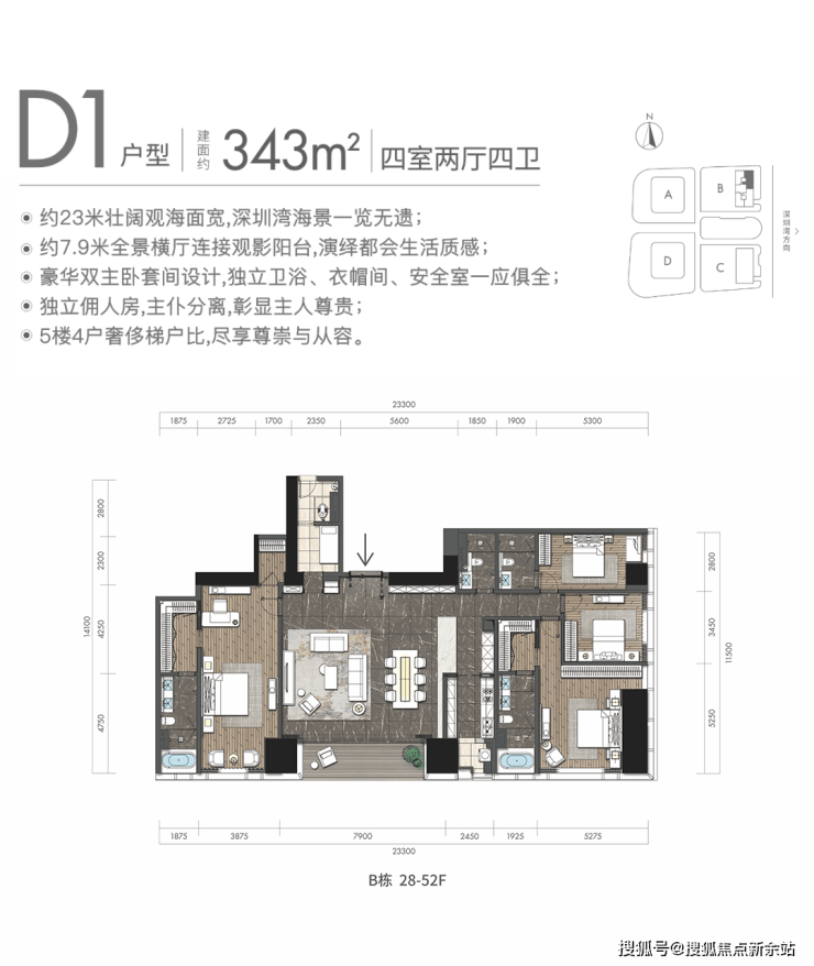 恒裕深圳湾,约41万㎡滨海综合体,以约305米天际高度,屹立湾区主轴正央,与深圳湾对称而立,独赏大美湾心。