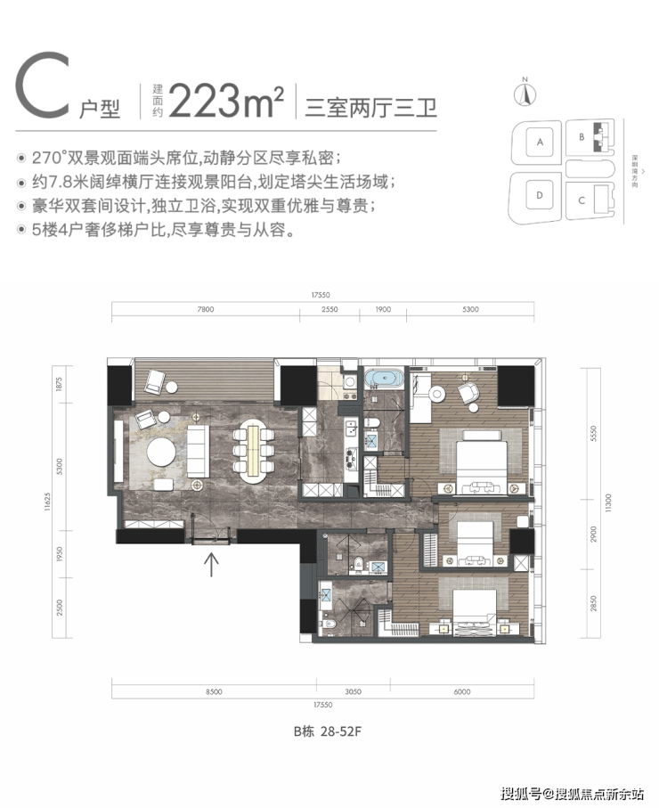 销售户型:约63-110㎡3房 封面资产约230-250㎡3房 天际公寓约340-580㎡4房 云端藏品
