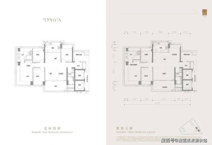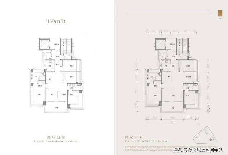 139㎡四房两厅两卫:位于3栋,提供A(竖厅南北通透)、B(双龙抱珠)两种格局。四开间朝南设计,主卧配备270°无柱转角飘窗。由SCD团队打造,提供“风尚米”和“经典灰”两种装修风格,可定制为高配版三房。