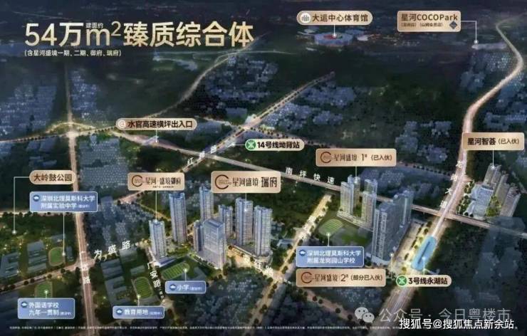 星河盛境3期,位于深圳市龙岗区园山街道,地处大运板块核心区域,毗邻地铁3号线永湖站及14号线坳背站,是双地铁覆盖的TOD综合体项目。