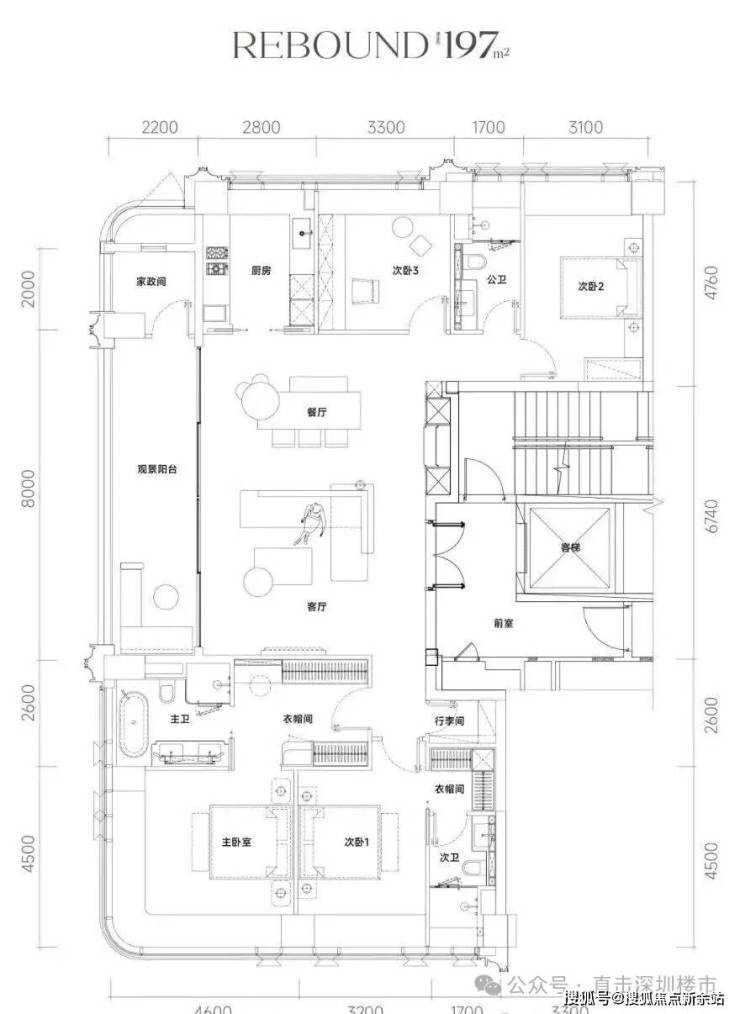 主力户型为186-247㎡,主打T2/T3楼型