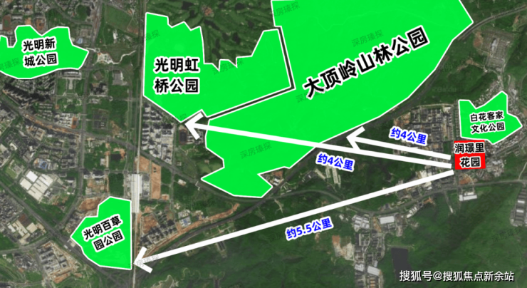 另外在自驾20分钟范围内,还有光明虹桥公园,大顶岭山林公园,光明新城公园,光明百草园公园等等自然景观配套。
