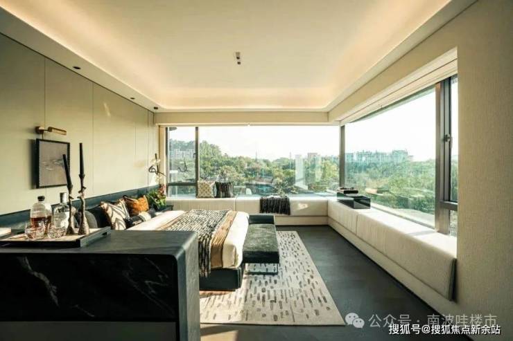 主卧套房更以约 270 度 IMAX 级环幕视野,将连绵山色与城市繁华尽收眼底,清晨看云雾缭绕山间,入夜赏灯火璀璨夜景。每一扇窗都是取景框,每一处角落都浸润着自然的诗意,重新诠释高端人居与山水共生的理想境界。