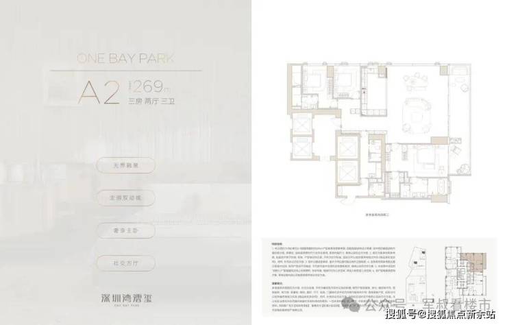 全明通透布局,主力户型配备 270° 环幕观景阳台,最大化收纳深圳湾海景