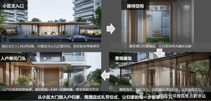 小区配套:提取漂浮岛屿的灵感元素,将外部花园街区及内部立体多维景观相结合,打造纯林自然的轻奢度假感园林景观, 以“花园街区、浮屿森庭”的景观主题、“一带一芯六境”的设计布局打造“度假式”轻奢园林