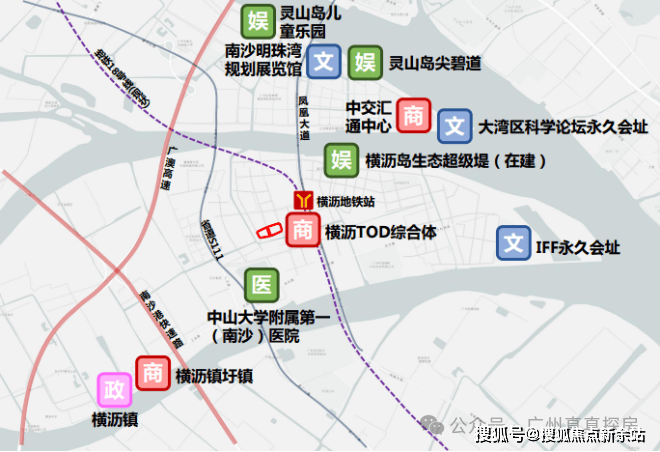 地块临近广澳高速、南沙港快速路,距离现状地铁 18 号线横沥站 350 米,旁边是规划中的 54 万㎡横沥 TOD 综合体。