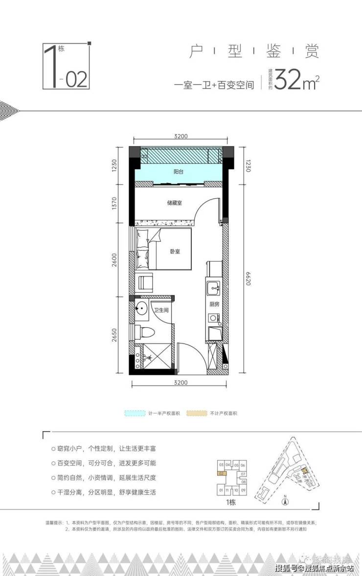 一室一卫+百变空间:约32【平方】