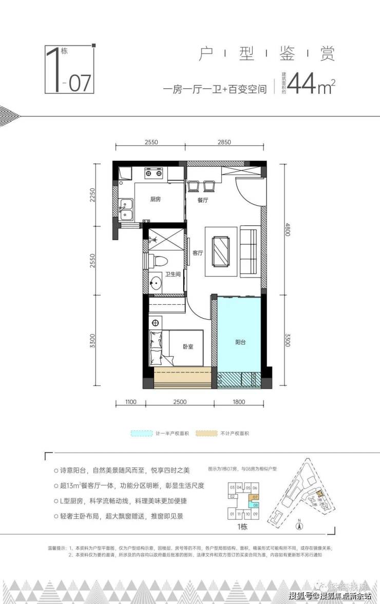 一房一厅一卫:约44(平方)