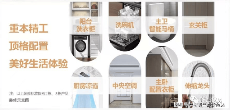 选用国内外知名高端品牌,高标准配置了中央空调、洗碗机、智能马桶等家电,人性化的设计了伸缩龙头、厨房凉霸、卫生间暖霸等贴心细节,全面提升您的生活质感