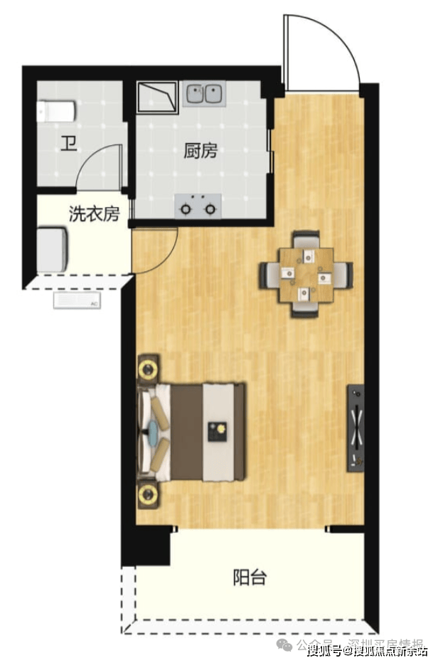 50㎡1房,带生活阳台,传统一房一厅布局。