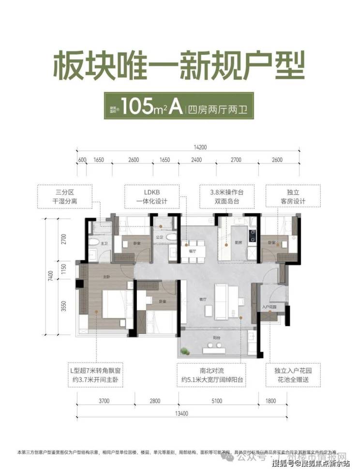 大宽厅、南北对流户型、可变设计、还有独立衣帽间、超7米转角飘窗...空间尺度惊人。
