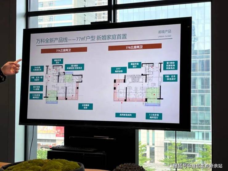 77平两个设计的差别,在于卧室布局不同。其中,B户型做到了四面宽朝南,非常少见。