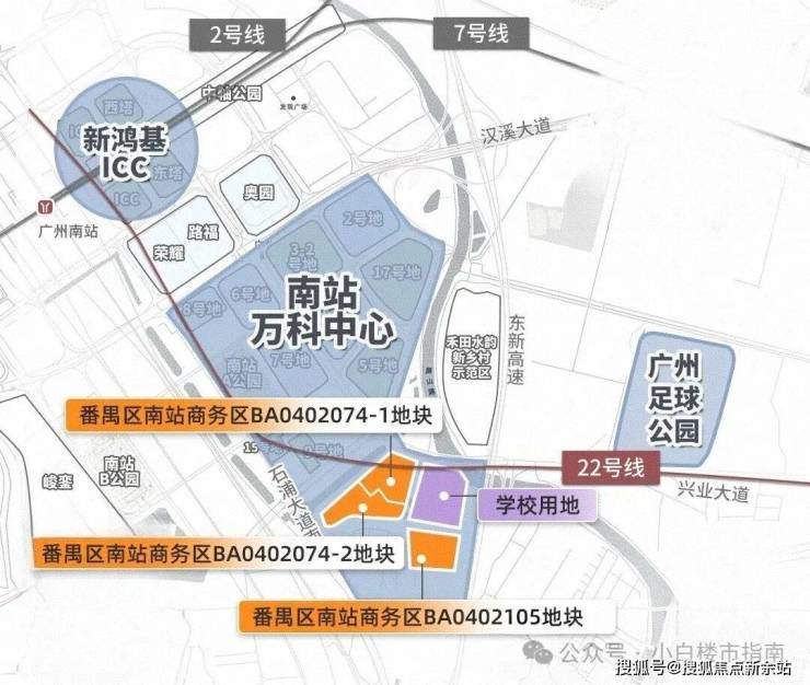 今年22号线(后通段)开通,5站直达白鹅潭CBD。地块距离2号线,7号线地铁广州南站约1.1公里;6站到珠江新城,4站到海珠,4站到万博