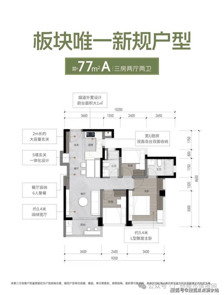 面积段涵盖77-105㎡三至四房,门槛友好,大概率是南站板块在售住宅中起步面积最小、总价最低的新盘了。