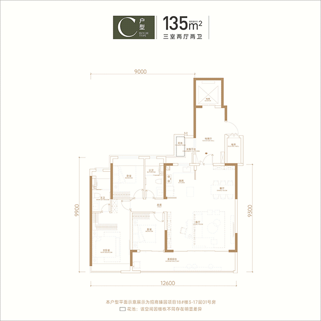 项目提供多种户型选择,包括建筑面积约 125㎡的 3 房 2 厅 2 卫、约 135㎡的 3 房 2 厅 2 卫和约 143㎡的 4 房 2 厅 2 卫。户型设计方正,南北通透,动静分区,满足不同客户的需求。