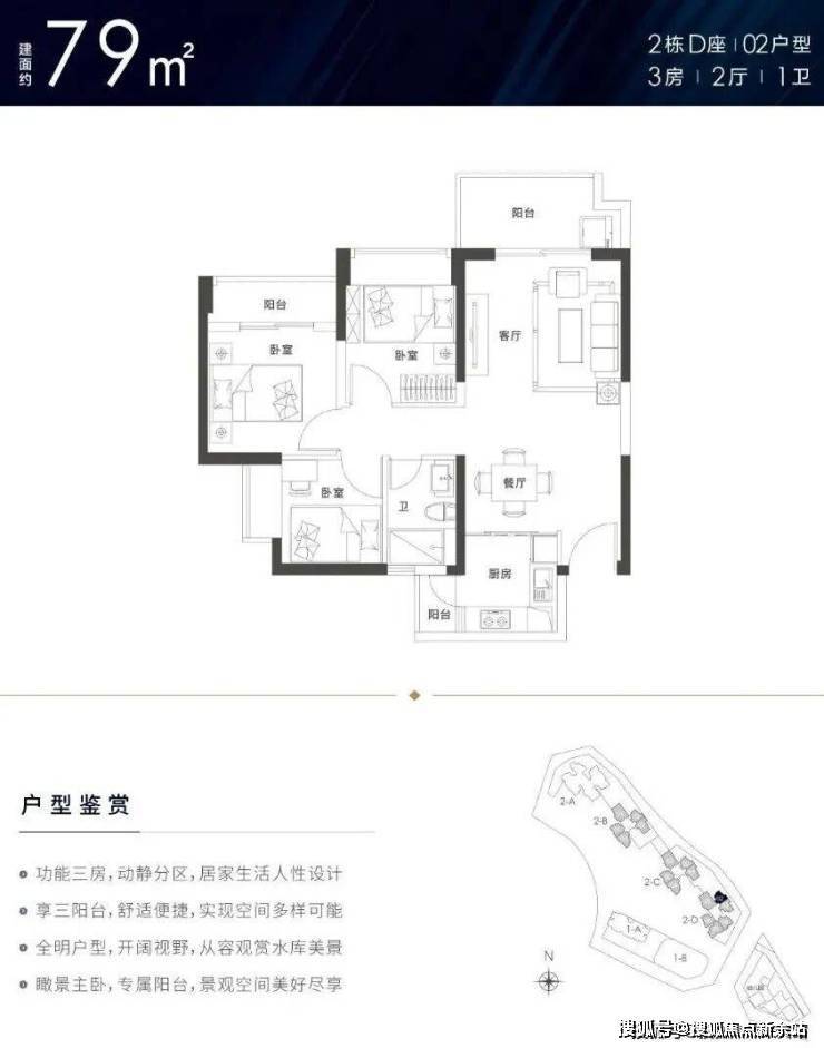建面约79-129㎡3-4房户型,南北通透,3房3.5~3.7m,4房3.8~4.2m,罕见阔绰开间,客厅、厨房、卧室三阳台多飘窗,超高使用率。
