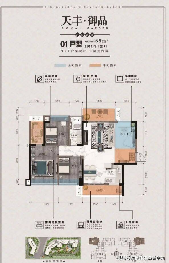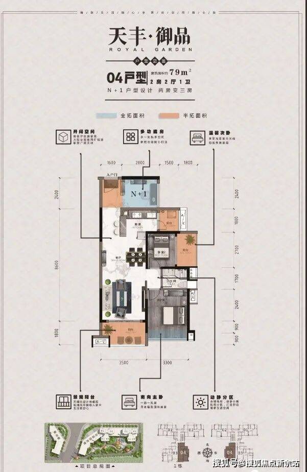 中山·天丰御品在户型上主打两梯四户的N+1房系列,一共92套,毛坯出售,建筑面积约79-118m²。建面约79㎡ 2房2厅1卫:可做三居室,客厅开间达3.5米,方正实用,采光通风功能极佳,南向阳台和主卧都可以直面园林美景,极致的户型充分满足刚需客户的需求。