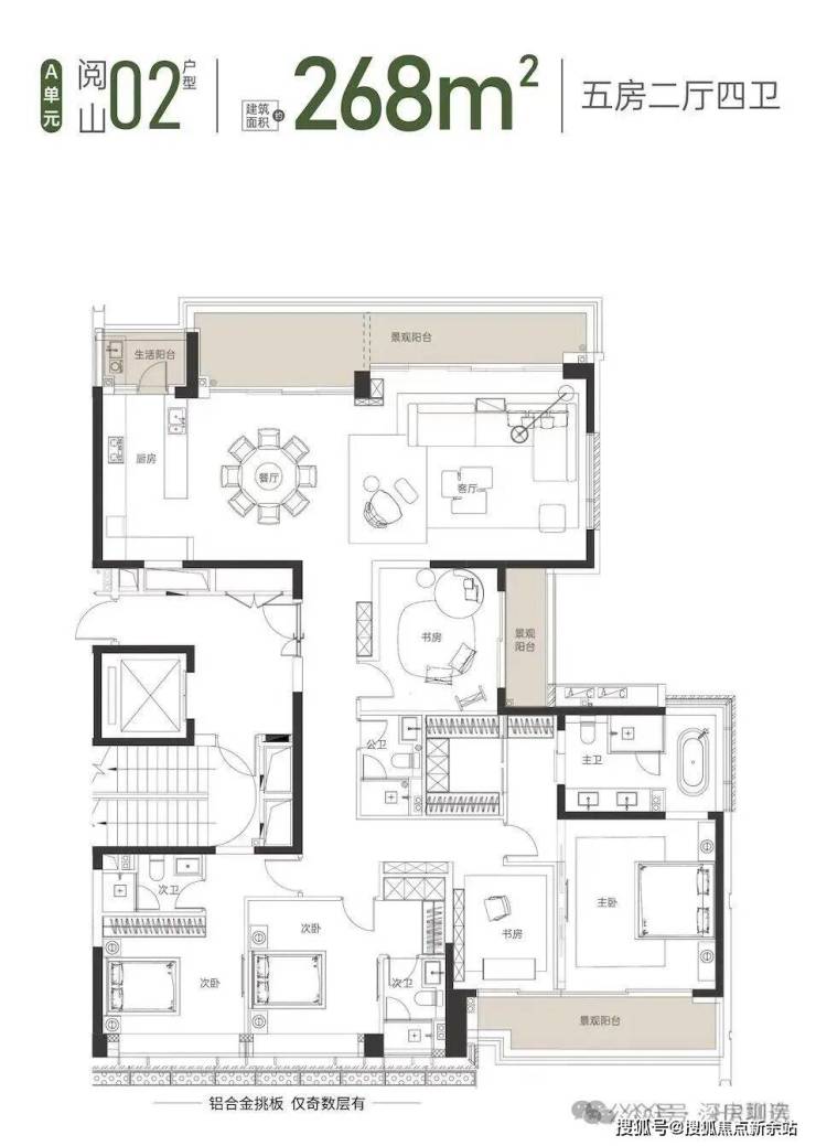 02户型 268平5房4卫 3套间 3.6米层高 专梯入户
