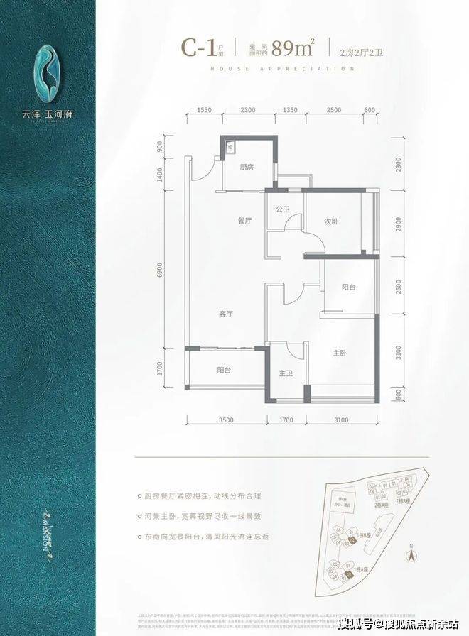 V型塔楼布局,南向阳光户型,约80%高实用率,双阳台,光明罕有绝版户型。建面约80-143㎡河岸美宅,赠送高标准绿建简装,向往的生活在这里触手可及。