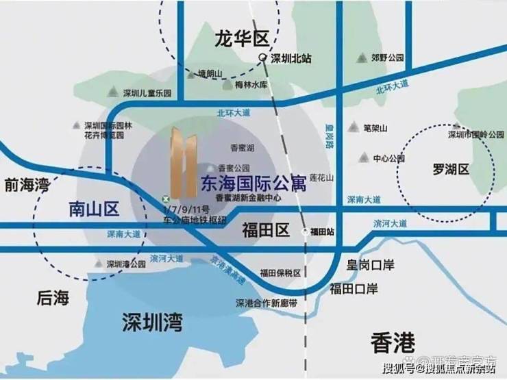 【多维交通 地铁上盖物业】城市主干道深南大道之上。1、7、9、11号线四条地铁交汇到站即到家,广深港高铁客运专线实现14分钟深港高铁生活,毗邻京港澳高速入口,20分钟可达深圳可达深圳机场。