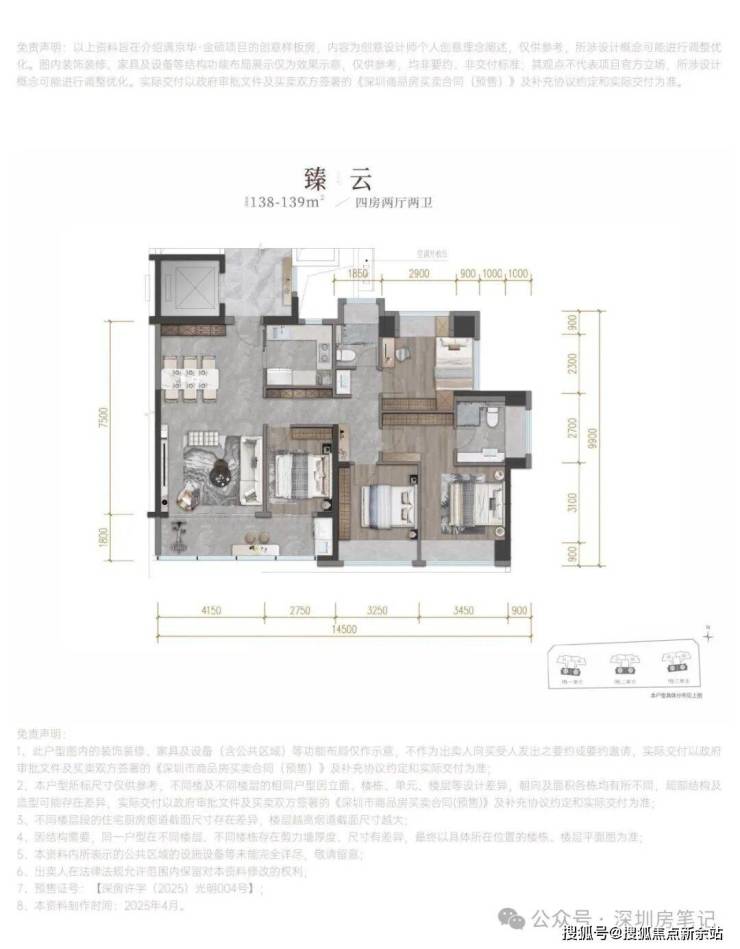 138-139㎡的户型,折后单价约4.83-5.16万/㎡,折后总价约666-717万/套;