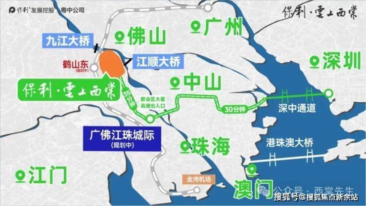 通过江顺大桥、九江大桥,约20min到达佛山信基广场;广佛江珠城轨(规划中),一站到佛山、5站到广州,融入30分钟广佛江珠生活圈,多元生活轻松享。