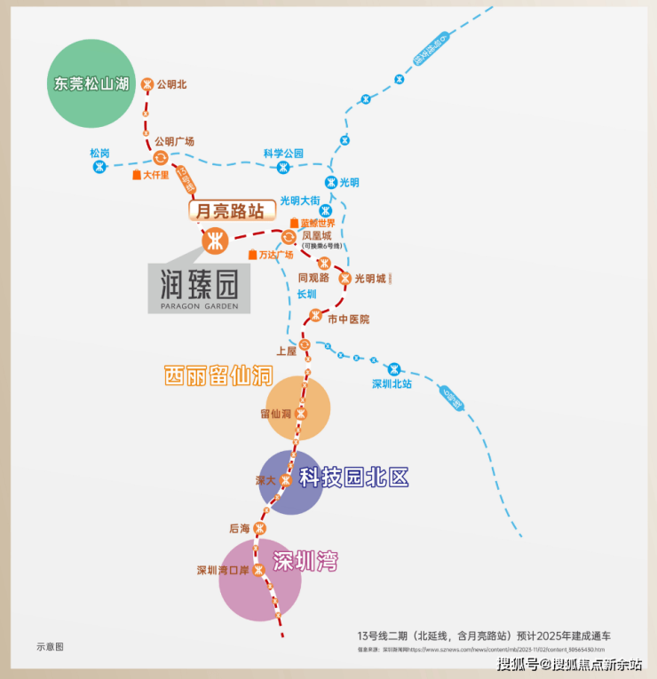 地铁交通:轨道交通直线距离约600m到达地铁13号线月亮路站(建设中),1站凤凰城,9站到南山,2025年将推动13号线二期(北延)建成通车。