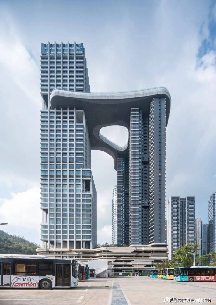 前海宸湾。这座总建筑面积 15 万 m² 的综合体,一边靠着大小南山,望向大海,一边连着地铁 2号、5 号线始发站,比邻蛇口港和深圳湾口岸。在这样寸土寸金的区域,接近10的高容积率条件下,如何更有效地满足住宅、办公与酒店的需求,同时不辜负眼前的山海景观?这就是华森设计团队要解决的核心问题。