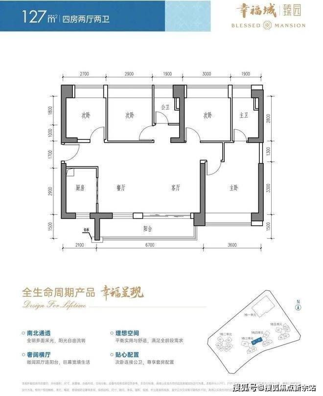 127㎡的4房2厅2卫,设计的是横厅南北通透格局,进门入户玄关,客餐厅6.7米开间,LDKB一体化设计,全屋6个飘窗面,4个卧室分别做到了主卧16.9㎡/次卧10.2㎡/次卧9.86㎡/次卧9.1㎡(包含墙体飘窗),客餐厅出6.7米长的大阳台,U型厨房,卫生间干湿分离,得房率约87.72%(包含赠送),阳台主朝东南向。