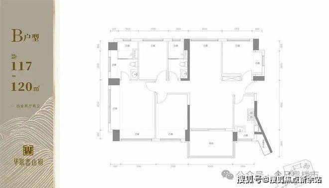 117-120㎡四房两厅两卫(平层):改善主力,南北通透 + 南向三开间,主卧 270° 景观凸窗,四房设计满足多代同堂或 “三孩家庭”。