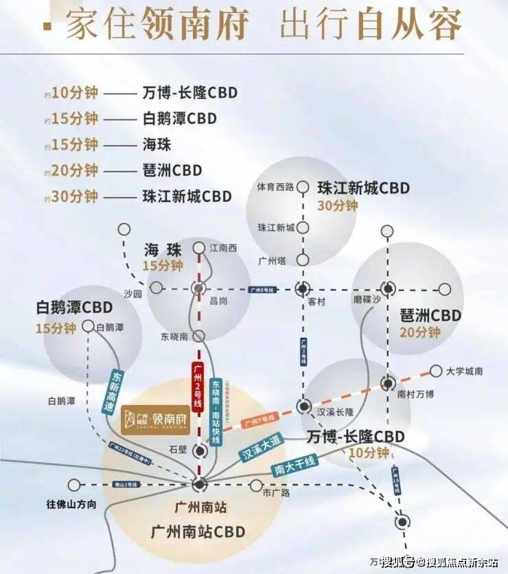 广州城投·领南府择址南站核芯商务区,咫尺世界级枢纽,高铁、城际、地铁(2号线、7号线、22号线、佛山2号线,广佛环线[在建中])多维路网交织,畅联湾区,通达全国。
