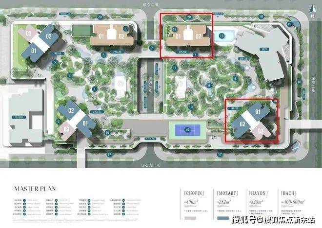 户型面积段设计为196-252-328㎡3-4房和400-600㎡顶层复式