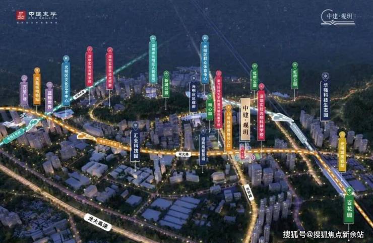 光明城高铁站为广深港高铁与赣深高铁重要枢纽,是深圳北部关键交通节点。项目周边衔接观光路、光侨路、深圳外环高速、龙大高速等主干道路,构建多维立体交通网络,通达性优越。