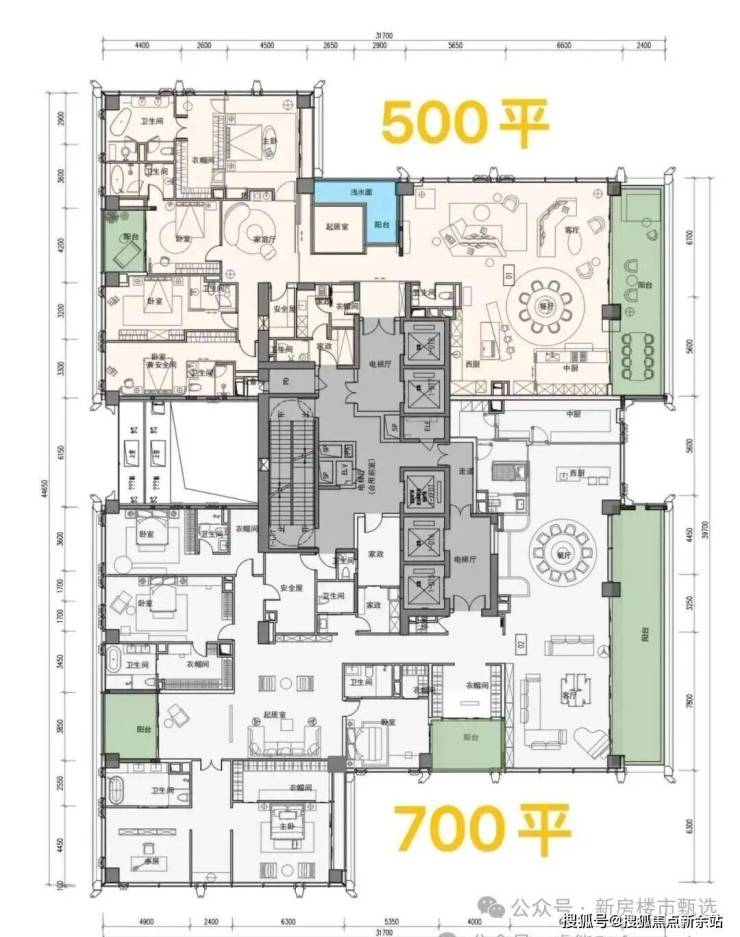 · 370-375㎡户型: 4+1房五卫设计,配备家庭厅和家政套间,适合有多样化生活需求的高净值家庭。
