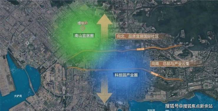 缙樾府落位深湾核芯,周边三轴拱卫,深圳五大顶级总部基地环绕,联动西丽高铁新城增长极,形成立基于深湾之上的产业价值能级跃升。