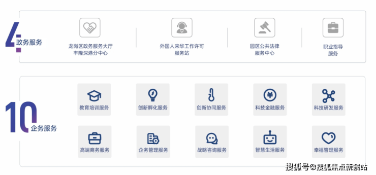 与龙岗区政府共建企业服务中心,构建政务服务+企务服务,约合78项服务产品,涵盖科技金融、技术创新、产学研合作人才、 政策、工商、税务、法务、知识产权、培训辅导、衣食住行等方面。