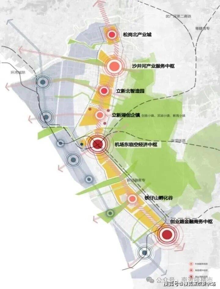 空铁新城机场东综合交通枢纽作为深圳建设国际航空枢纽与国家铁路枢纽的重要组成部分,集航空、高铁、城际、城市轨道、公交等多种交通方式于一体。目依托自身的交通优势。左连前海、右接会展。享受前海的金融利好辐射,又承载着会展的人流导入的功能。成是湾区三角中金融辐射、会展人流承载的核心地带